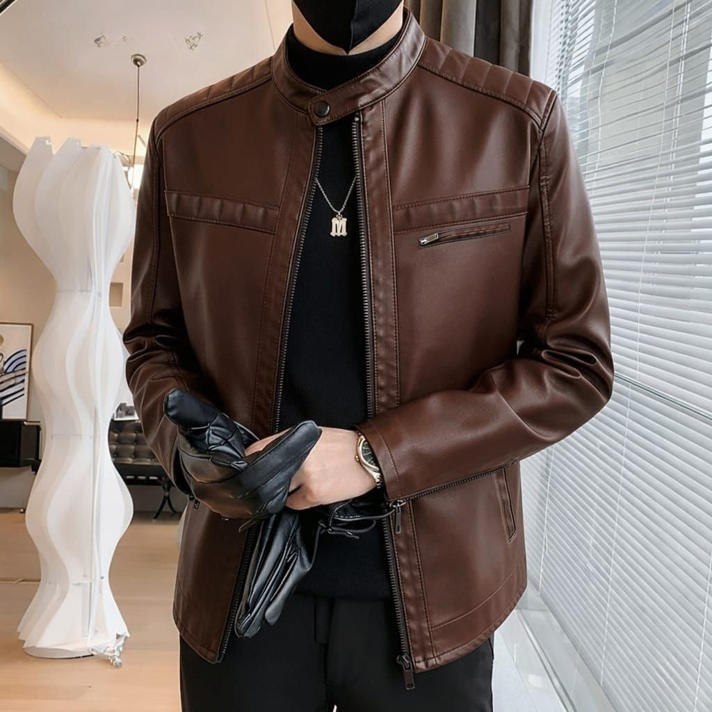 جاكت جلد أنيق يضيف لمسة فخامة لأي إطلالة. تصميم عصري وخامة عالية الجودة، مثالي للخروجات والعمل والسهرات
