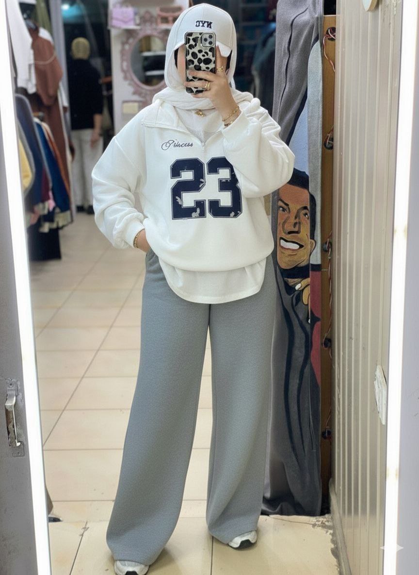 خامة سمر ميلتون: نسيج متوسط الثقل، ناعم على البشرة ومثالي لجميع فصول السنة، حيث يجمع بين المتانة والراحة. تصميم الهودي: يتميز بياقة ذات سحاب (نص سوسته) للتحكم في شكل الياقة، مع طباعة احترافية تضيف لمسة شبابية. بنطلون وايد ليج: قصة واسعة من الأعلى للأسفل تمنحك مظهراً طويلاً ومتناسقاً وتناسب مختلف أنواع الأحذية الرياضية. مثالي للخروجات: طقم متكامل يوفر عليك عناء التنسيق، مناسب للجامعة، المشاوير اليومية، أو ممارسة الرياضة.