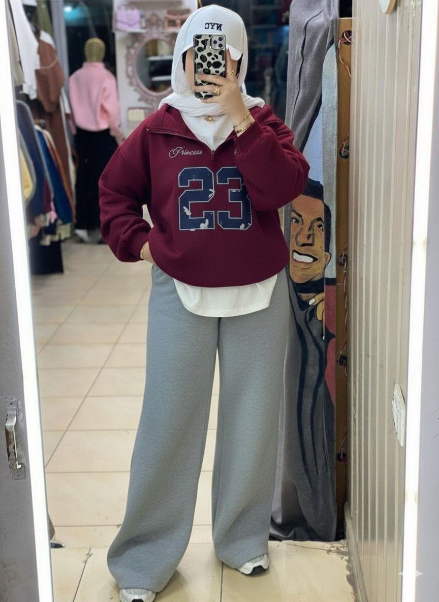 طقم رياضي (هودي نص سوسته + بنطلون وايد ليج) سمر ميلتون